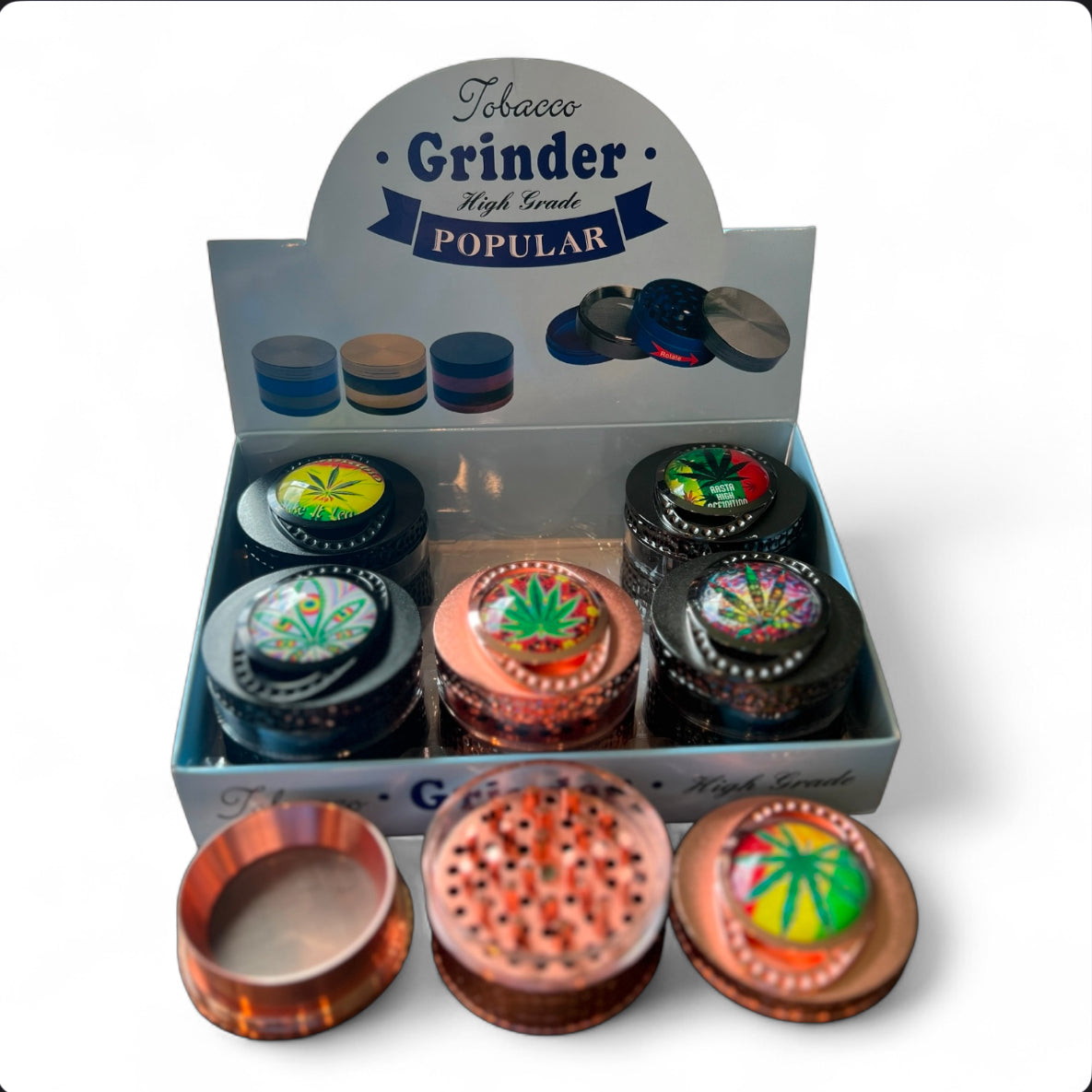 HEAVY WEIGHT RASTA 4 PART METAL TOBACCO GRINDER 60MM 6CT BOX